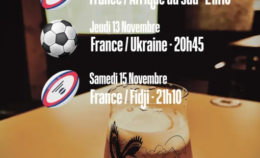 Viens vibrer devant les prochains matchs dans une ambiance conviviale autour d’une bonne bière ! Samedi 8 Novembre – 21h10 France Afrique du Sud…