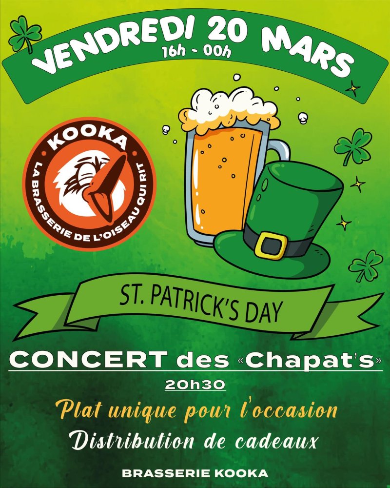 Le vendredi 20 mars de 16h à 00h, on passe en mode Irish à la Brasserie Kooka ! ![]()